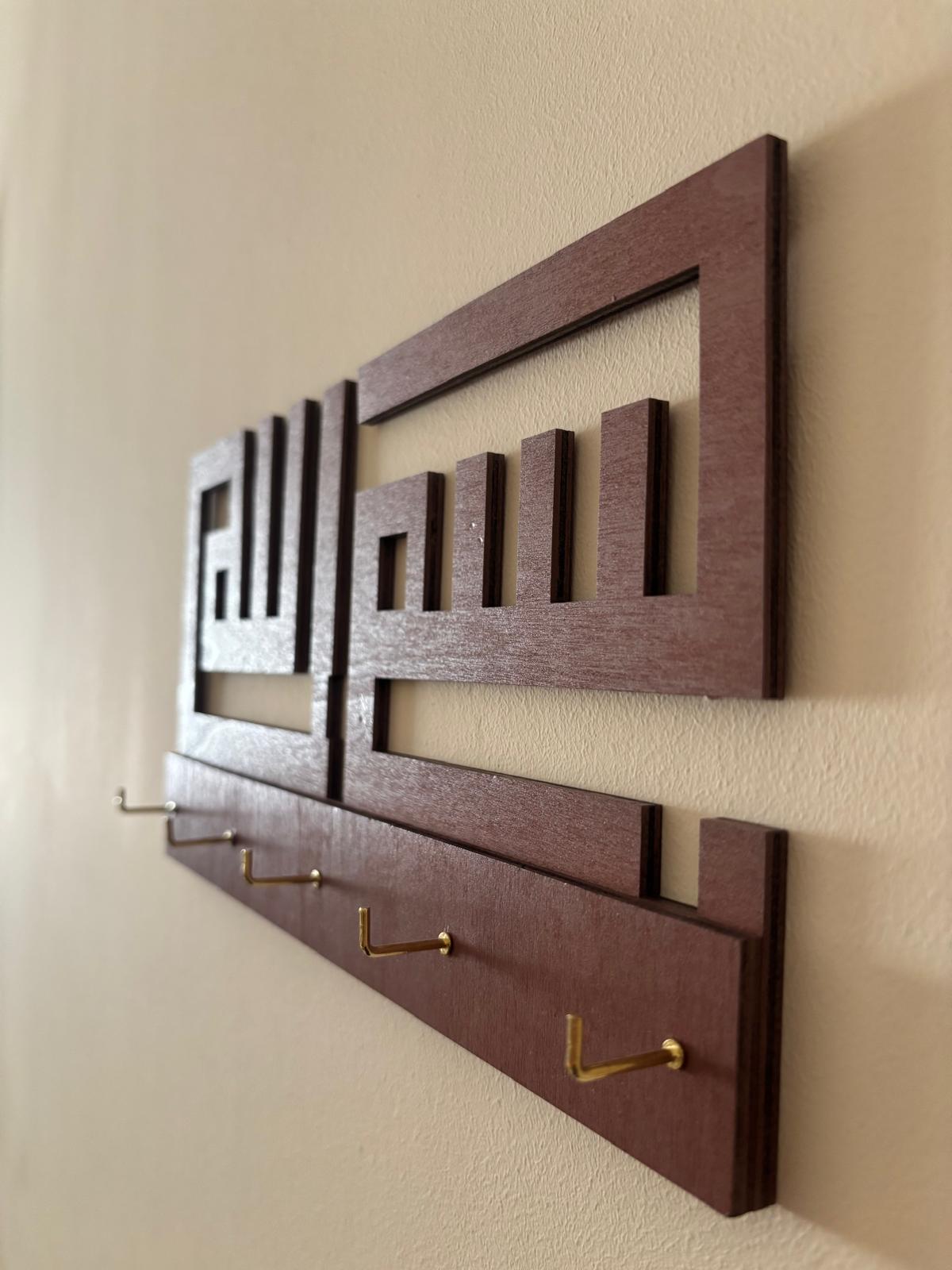 Wooden Key Holder with Arabic Calligraphy | بِسْمِ ٱللَّٰهِ Bismillah |.