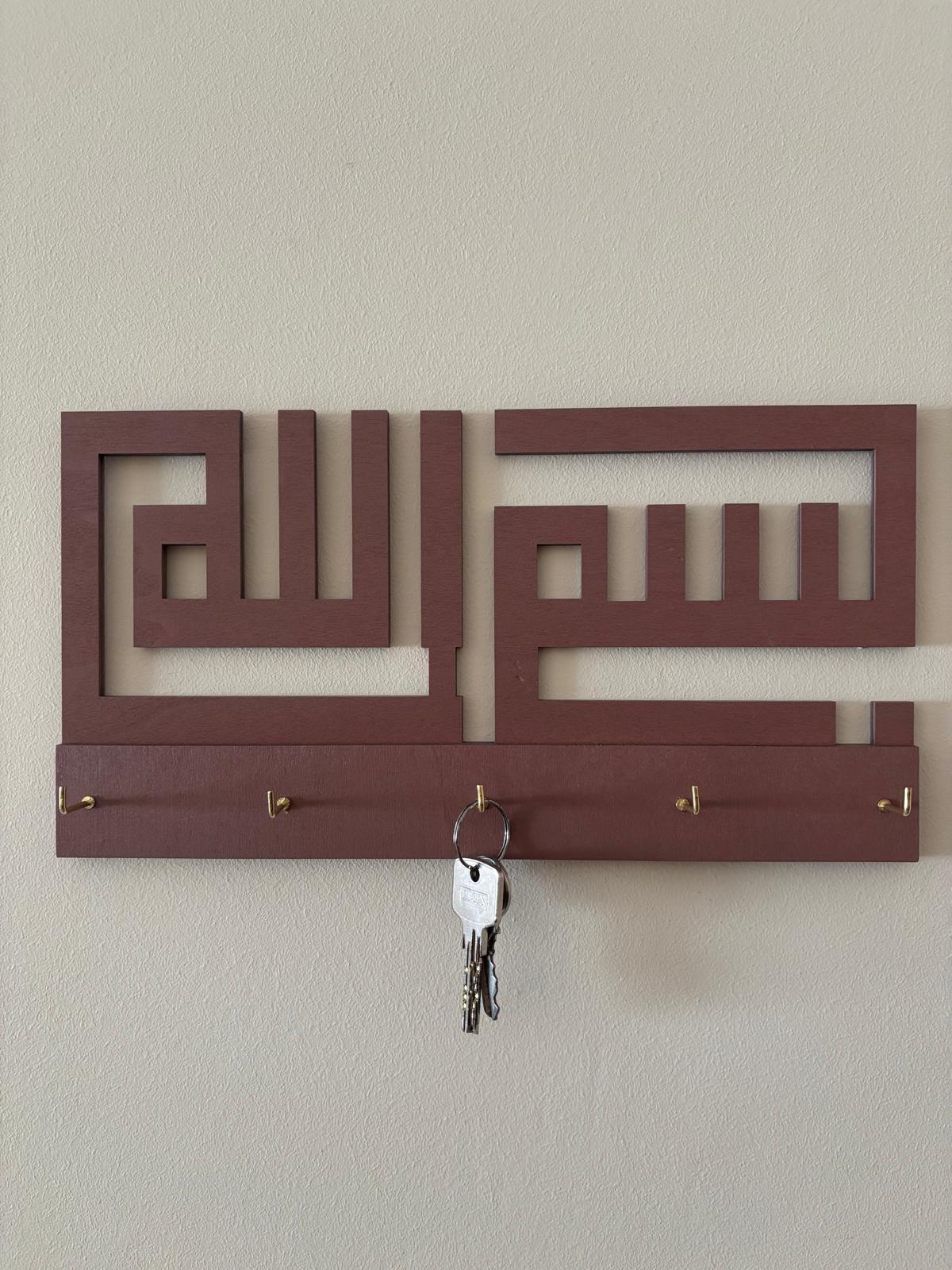 Meaningful and useful: | بِسْمِ ٱللَّٰهِ Bismillah | opens every important action in life with intention, purpose, and meaning. Having this word visible at the entrance to your home not only brings blessing - barakah البركة - but also a sense of order, serenity, and spiritual connection. This hanger is a way to bring that meaning into your daily routine, transforming a simple gesture like hanging up your keys into a conscious reminder of faith.