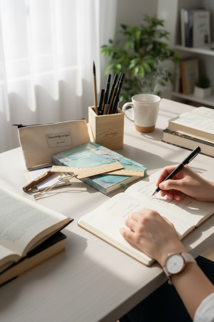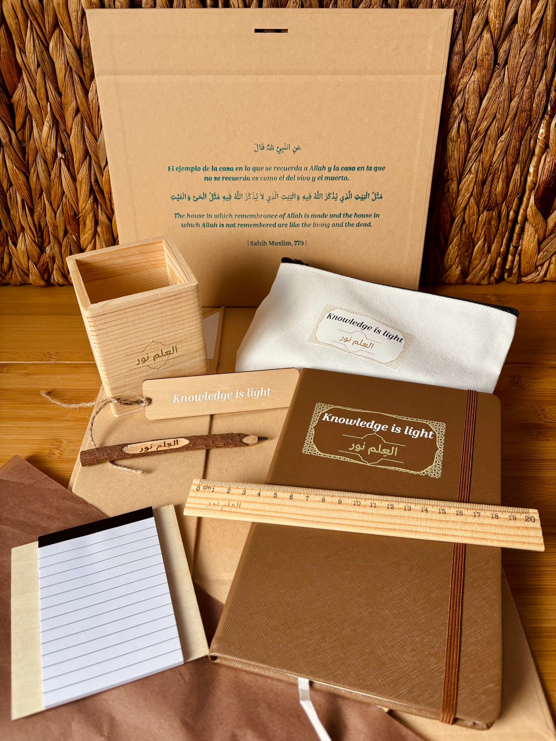 - Ilumina tus momentos de estudio, reflexión y organización con el Pack Al-ʿIlmo Nour, un conjunto creado para quienes valoran el aprendizaje, la escritura consciente y el crecimiento personal.