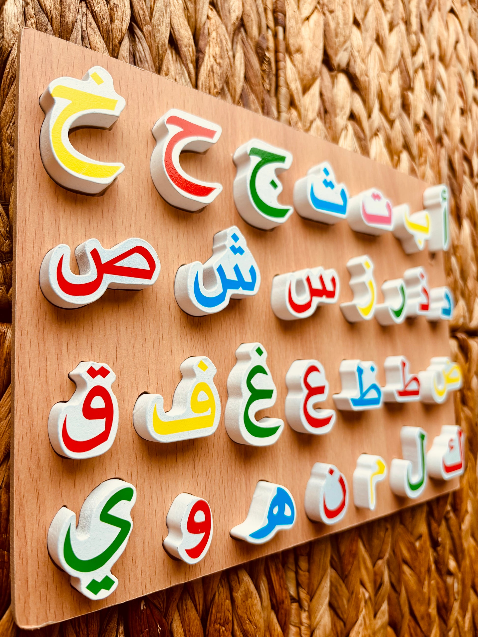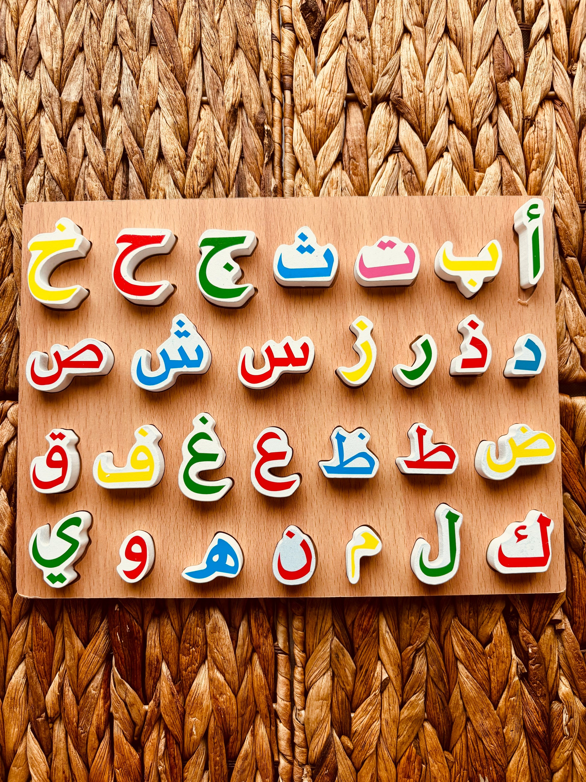 Descubre la belleza del idioma árabe desde la infancia con este exclusivo Abecedario de Madera. Un material educativo y natural que transforma el aprendizaje en un momento de conexión con la cultura, religión y juego consciente. Diseñado cuidadosamente siendo perfecto para introducir el alfabeto árabe desde edades tempranas, con respeto y amor por la lengua de El Noble Corán القرآن الكريم.