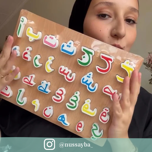 In Islam, the first Madrasa (المدرسة) is the home, with the mother and father being the first masters. Introducing the Arabic alphabet from childhood is not just an educational step, but an act of love for our faith and our language. This wooden alphabet is not just a toy: it is a tool for sowing, from the home, a connection with the language of the Noble Quran (القرآن الكريم) and the knowledge that ennobles the heart.