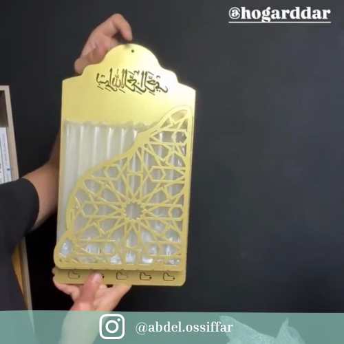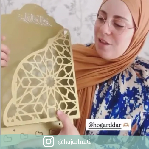 - Con un diseño árabe calado en metal mediante corte láser, esta pieza une la precisión moderna con la estética clásica del arte islámico, logrando un acabado elegante, limpio y lleno de identidad espiritual.