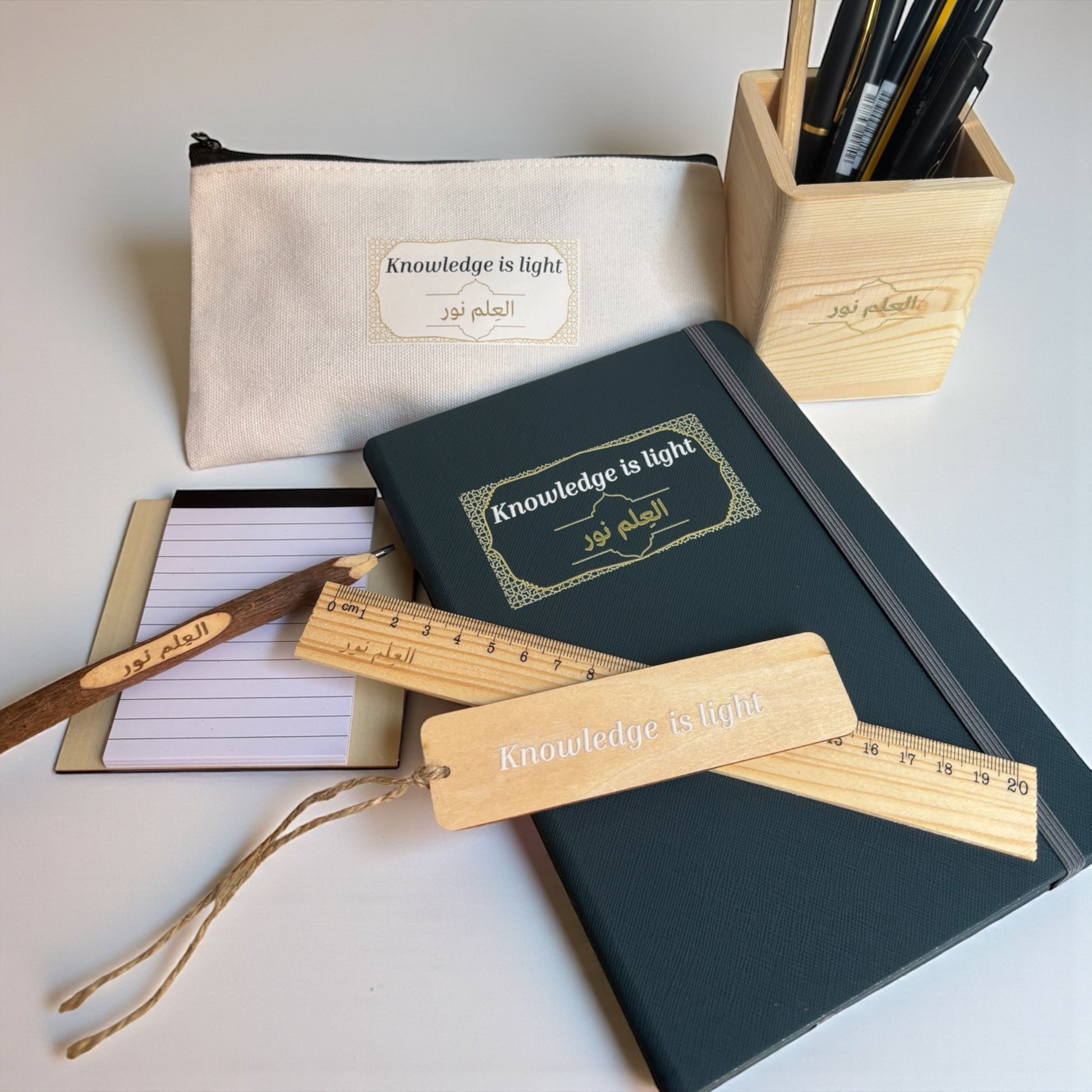 Ilumina tus momentos de estudio, reflexión y organización con el Pack Al-ʿIlmo Nour, un conjunto creado para quienes valoran el aprendizaje, la escritura consciente y el crecimiento personal.